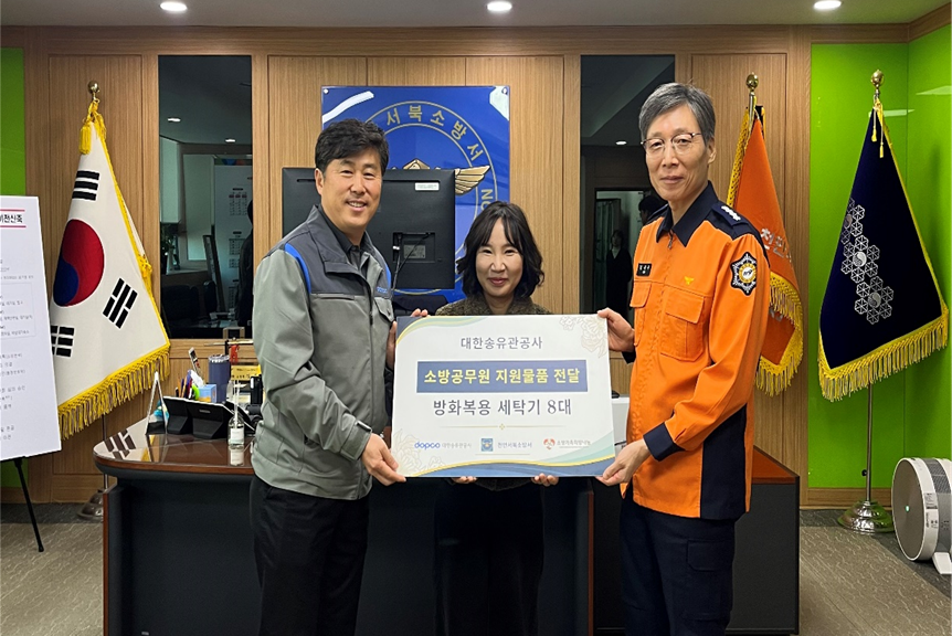 대한송유관공사(대표 박창길)는 지역 소방관의 근무환경 개선과 재난 대응 역량 강화를 위해 천안 서북소방서와 광주 광산소방서에 총 2천만원 상당의 물품을 전달했다고 밝혔다.