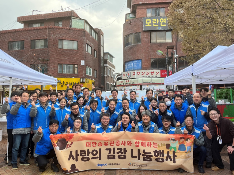 이번 행사에는 대한송유관공사 임직원 약 50여명이 참여해 직접 담근 김장김치 2,600kg을 중원구 내 독거 어르신 260 가구에 전달했다.